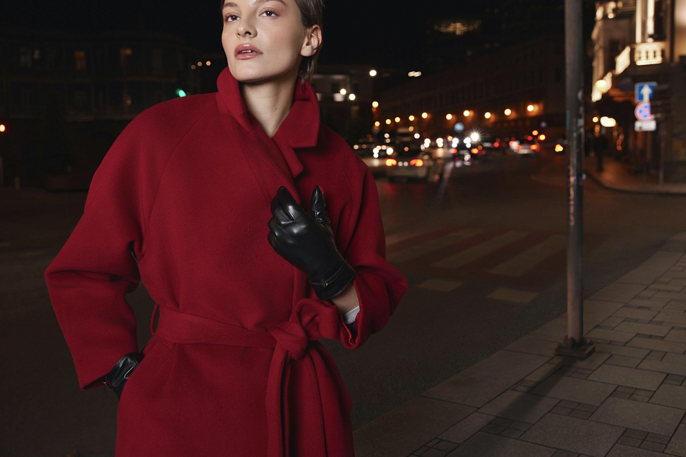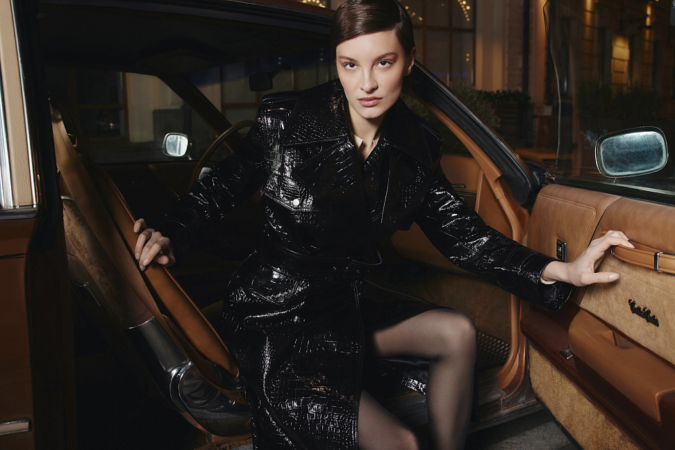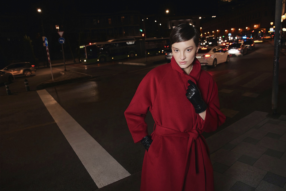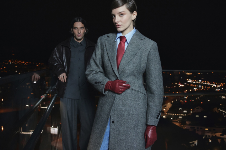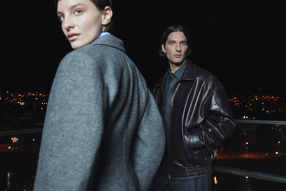 В женской линии представлены шерстяные пальто, изделия из натуральной кожи, костюмные комплекты из шерсти и тканей в елочку, трикотаж и деним – от базовых моделей до акцентных позиций с драпировками и фактурными деталями.
