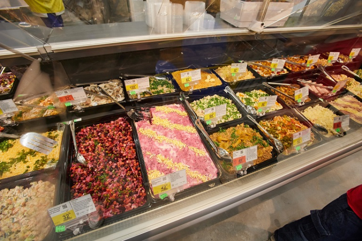 Следом по популярности идут салаты «Морковь по-корейски», «Жар-птица» и «Гнездо глухаря». В онлайн-сервисе в топ-10 оказались блюда, не столь популярные у посетителей магазинов. Это салаты с горбушей. В магазинах чаще приобретали «Свеклу с чесноком» и салат «Курочка Ряба» с куриным филе. Вместе с салатами берут мандарины и лимонады, а также кулинарию собственного производства.